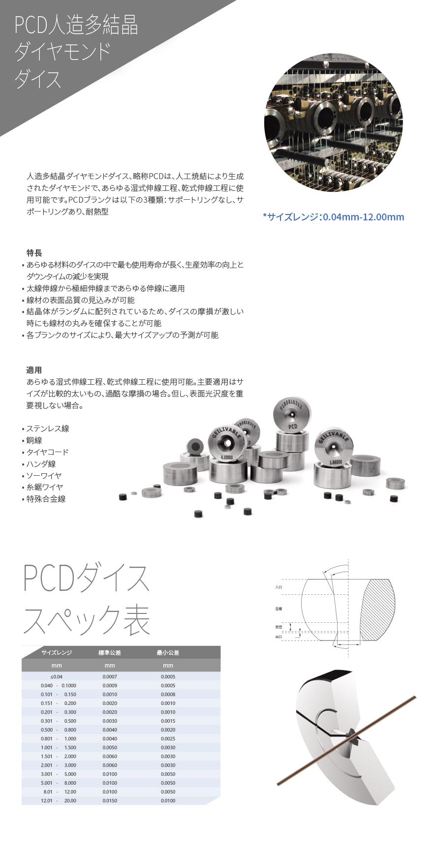 現(xiàn)在地:トップページ ? 製品情報 ? PCD人造多結晶ダイヤモンドダイス